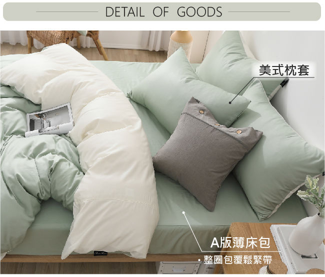 (3)DR5000(綠x米白)/(150cm x188cm x36cm)薄床包x1+美式薄枕套x2+