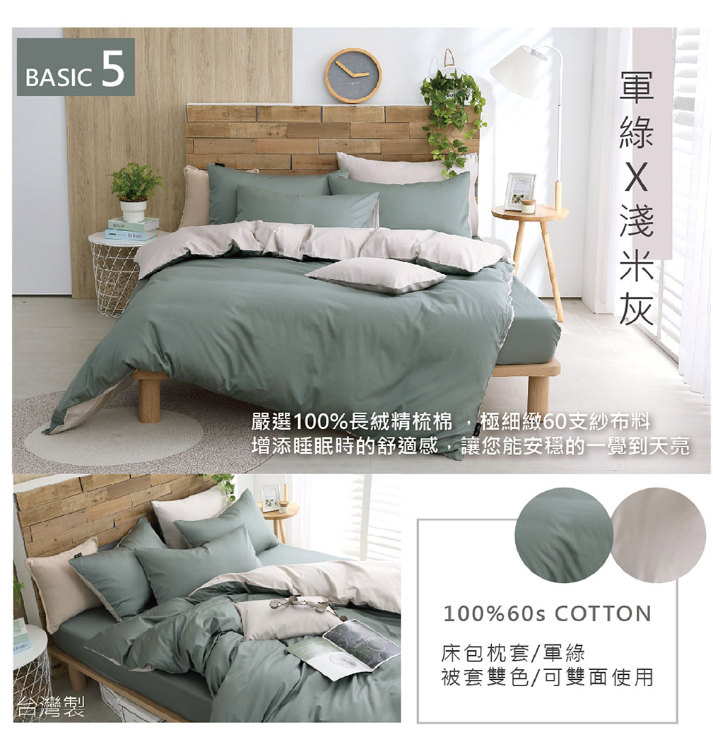 300織精梳長絨棉/加大雙人床包兩用被套四件組 【BASIC系列 多款任選】 台灣製 OLIVIA