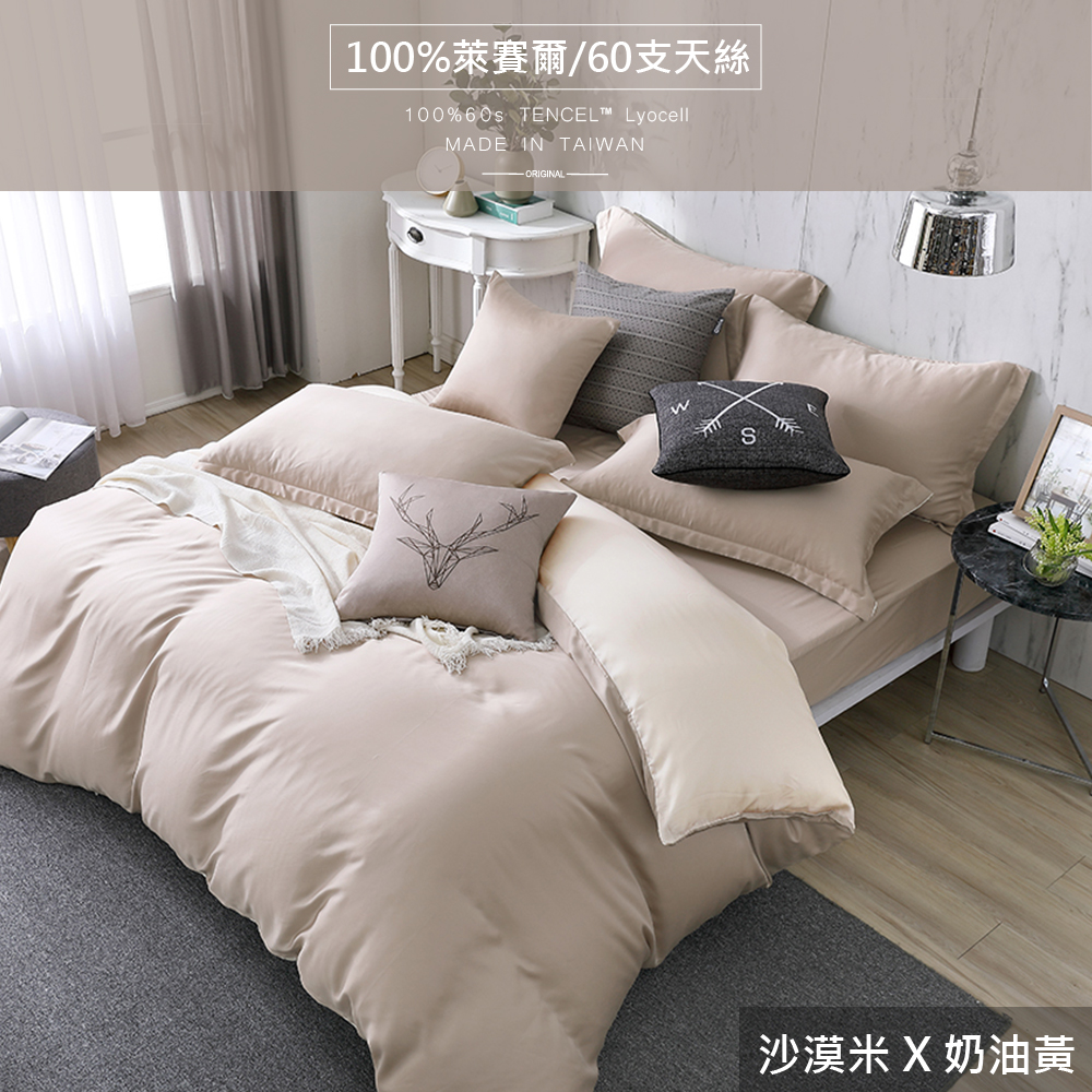 1.1.TL2000(沙漠米x奶油黃)/訂製(寬91cm x長212cm x原高38cm)薄床包x1+薄枕套x2+雙人(6x7尺=180cm x210cm)鋪棉兩用被套x1)x1組-2880元