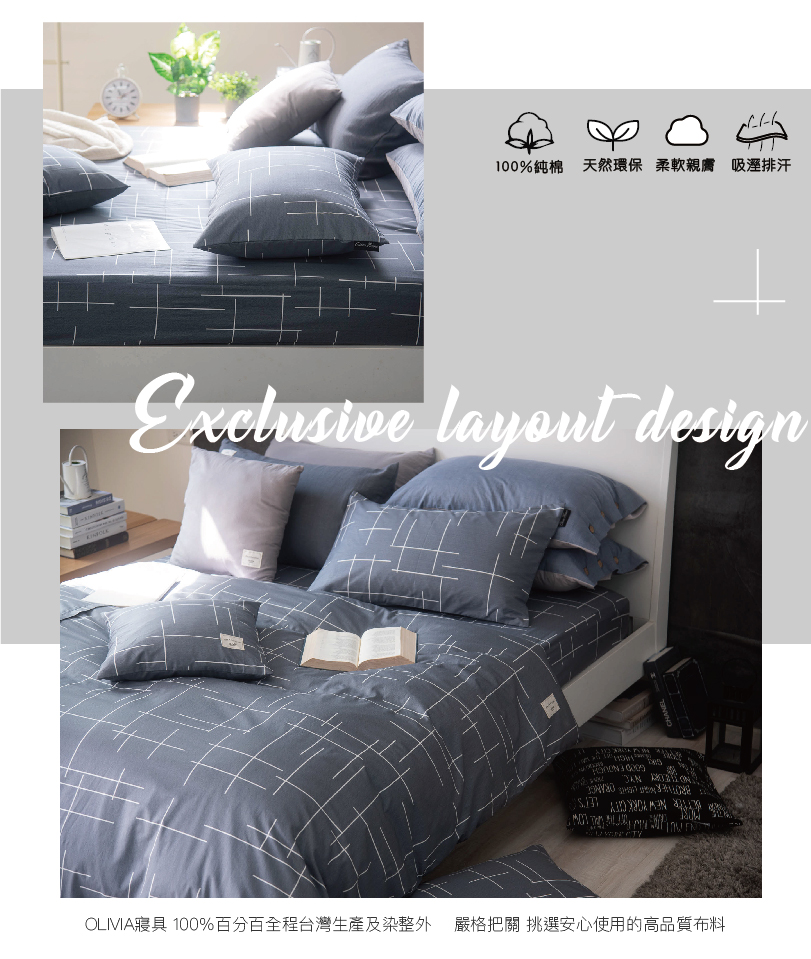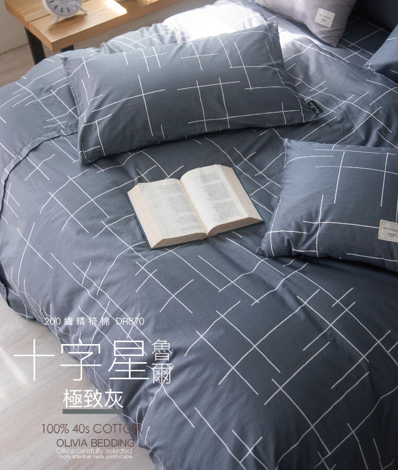 40支200織棉 雙人床包兩用被套組【DR870 魯爾 灰】中性簡約系列 OLIVIA 台灣製