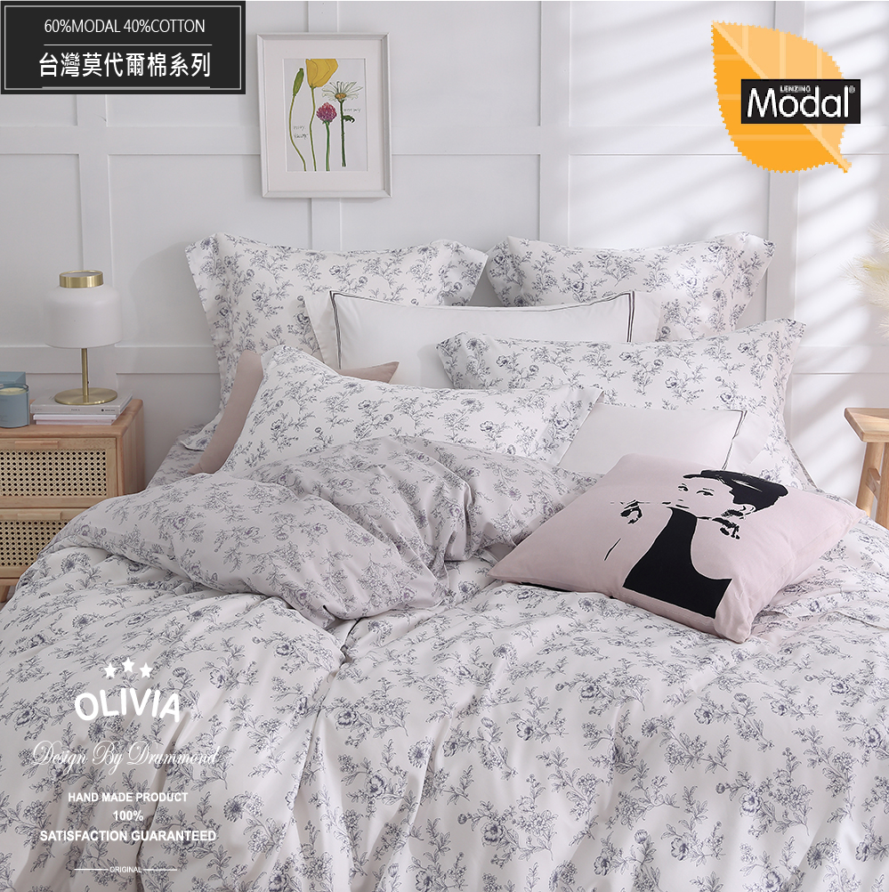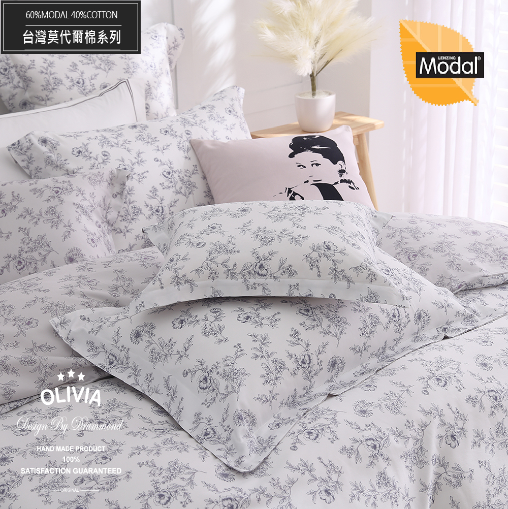 MOC莫代爾棉/標準單人薄床包枕套兩件組 【不含被套】【 DR5010希拉 】 台灣製 OLIVIA