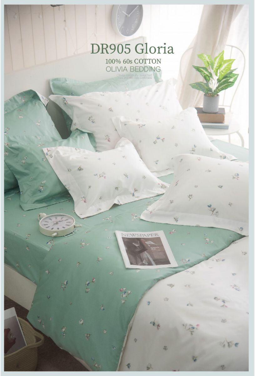 【OLIVIA】DR905 葛洛莉亞 白X綠/雙人床包枕套三件組/300織精梳棉 台灣製 獨家開版 法式鄉村風